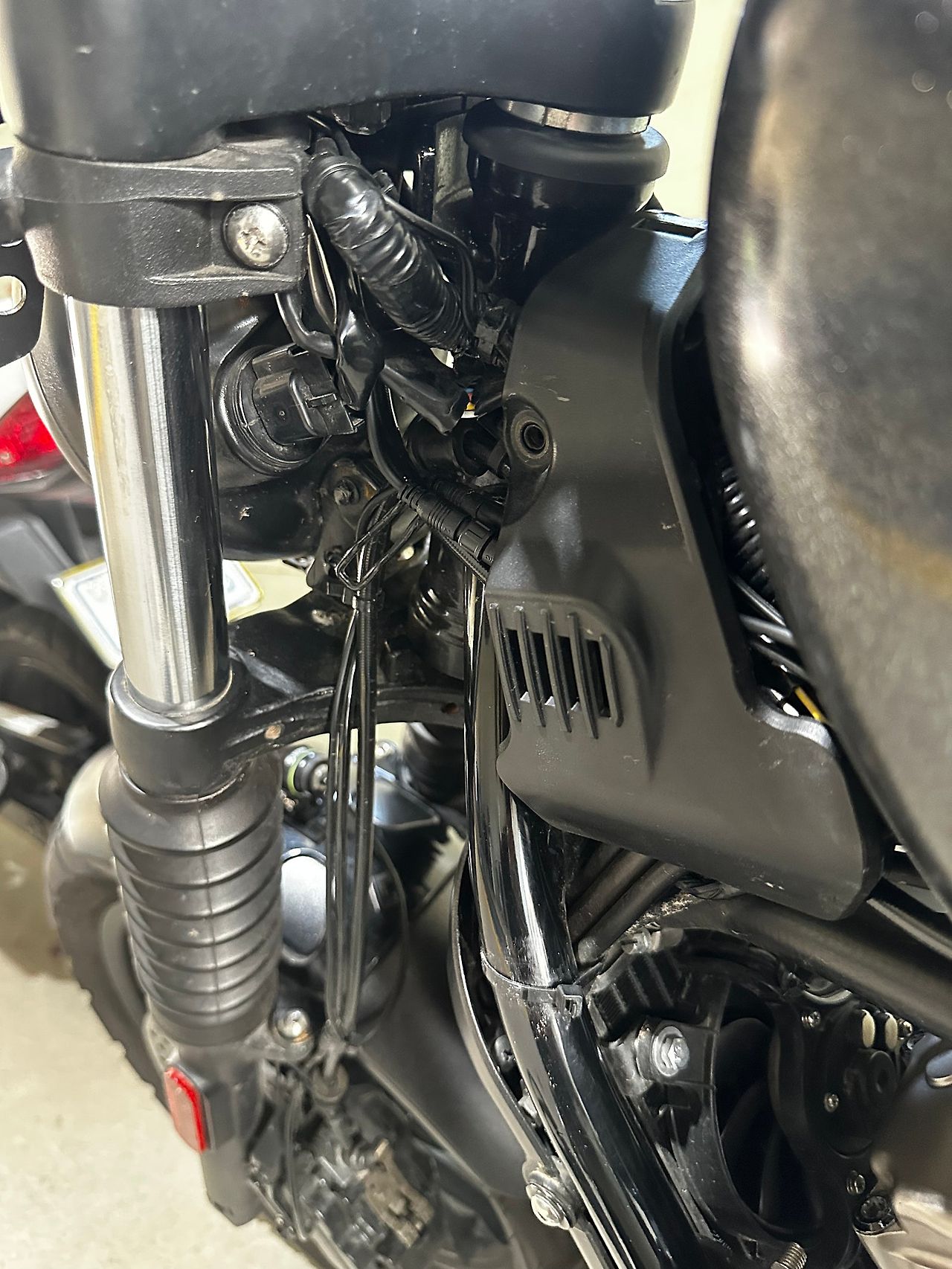 배선작업의 꽃. 연료탱크입니다. 하필 전날 만땅을 채워서 겁나게 무겁네요… 순정 배선 라인에 같이 케이블타이로 묶어줍니다.
